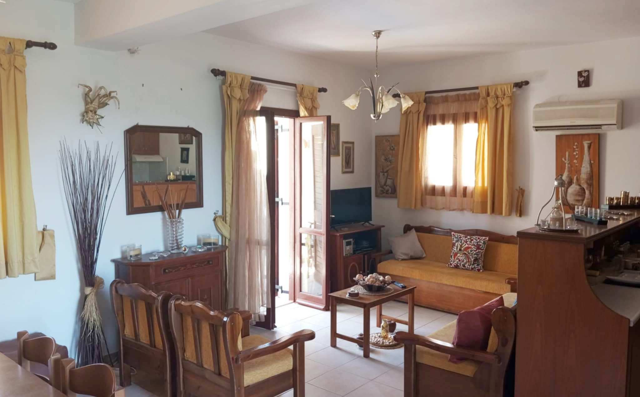 This furnished 2nd-floor apartment spans 82 sq.m. and features 2 bedrooms, a living room, kitchen, and bathroom. Built in 2004 (energy class A), it offers air conditioning for heating, stunning views, tiled floors, wardrobes, parking, a shared swimming pool and garden, electrical appliances, and a solar water heater. It’s conveniently located just 5km from Kalyves and offers all the essentials for you to begin your Cretan way of living!