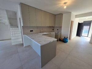 Measuring about 109 sqm, this beautiful maisonette was built in 2024 to the highest market standards, as seen in the accompanying photos. Spread over two levels, it offers 3 bedrooms, a living room, a kitchen, and 2 bathrooms. The spacious sitting room invites comfort, while the layout allows for future changes. Extra perks include a storage room. The property boasts stunning views, best enjoyed from its balconies. It comes unfurnished, with ceramic tile flooring, and features autonomous heating with heat pump, aluminium double-glazed joinery, elevator, secure door, balcony, internal staircase, and insect screens.