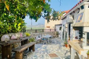 Tucked away on a peaceful village lane, the main house greets you with a roomy living area featuring the original Cretan oven as a decorative centrepiece and a wood-burning stove for cosy winter evenings. Stone arches and ceramic floors add to its timeless charm.