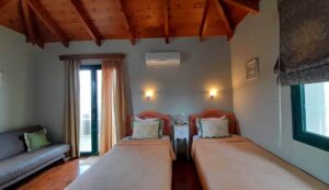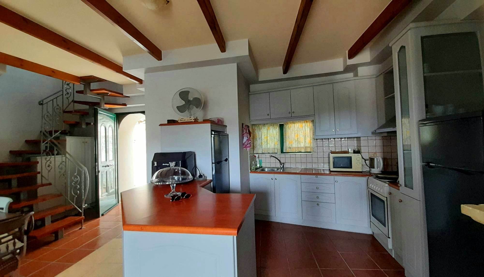 The ground floor of each maisonette consists of 1 kitchen, 1 living room, 1 WC and a large terrace from which the stairs lead to the lower floor where the pool area is located.